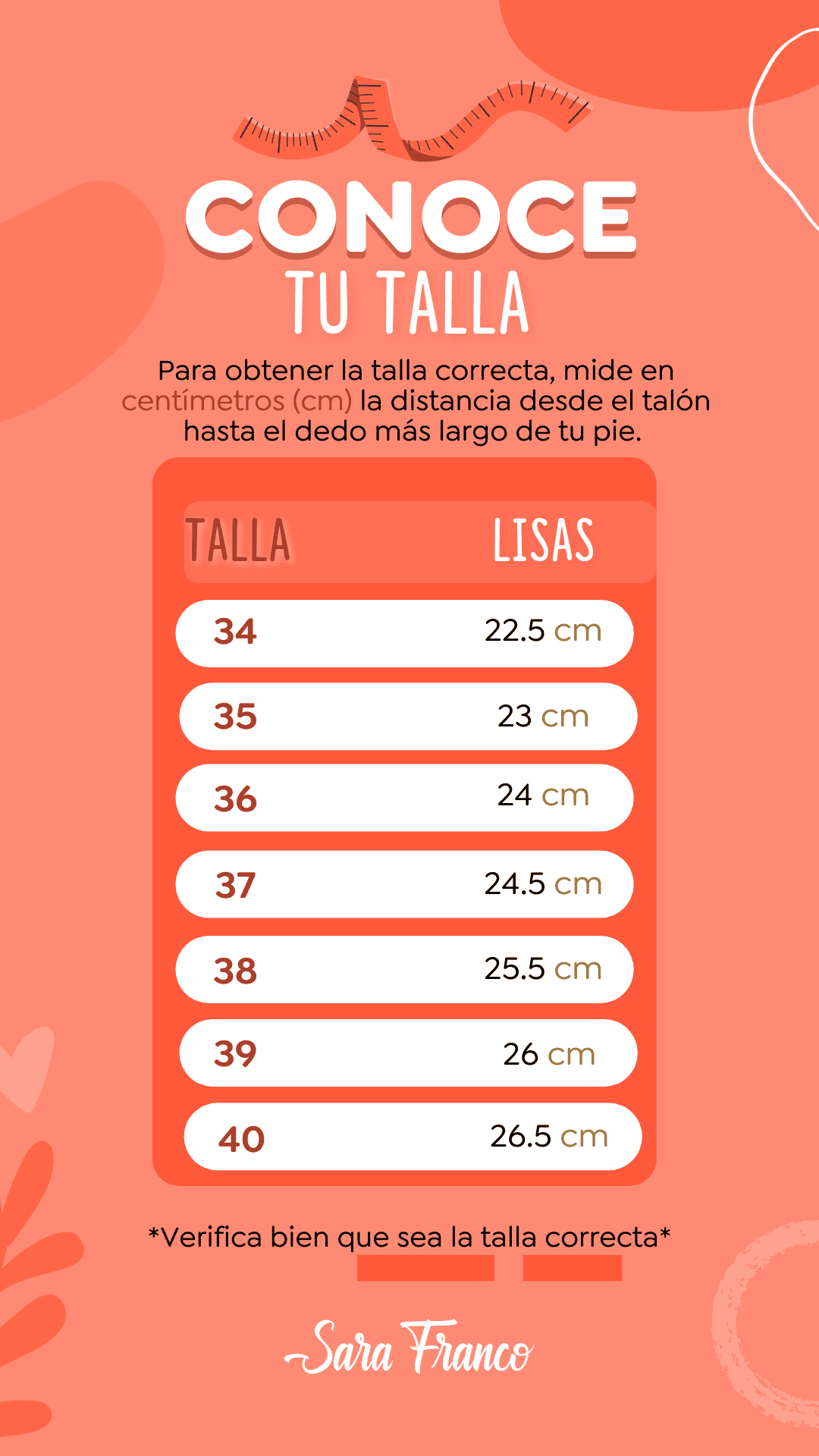 Mide la longitud de tu pie y consulta nuestra guía de tallas. Si prefieres, puedes visitarnos en tienda para probártelas.