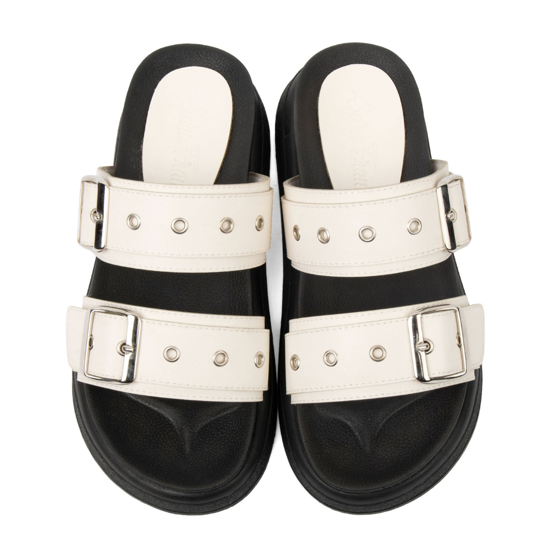 Sus doble correas con ojales metálicos y hebillas ajustables aportan un look fuerte pero versátil, ideal para el día a día.